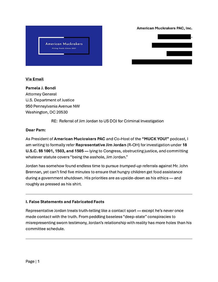 NEW: Jim Jordan Refers John Brennan to US DOJ & American Muckrakers Refers Jordan to US DOJ Too.